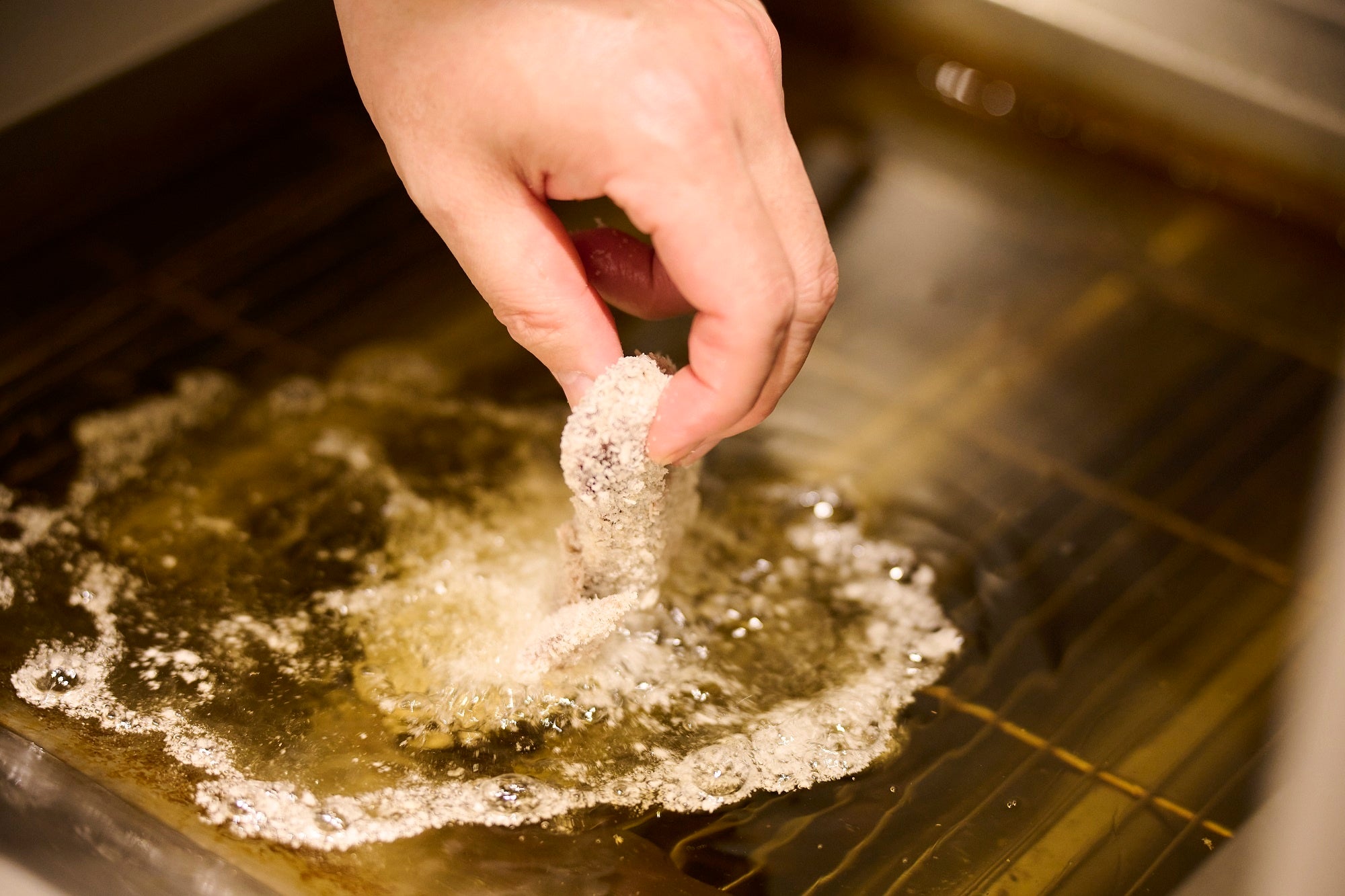 細粒薄衣がカラッと中はジューシーでさっぱりした脂の甘さを味わっていただくことができます。
