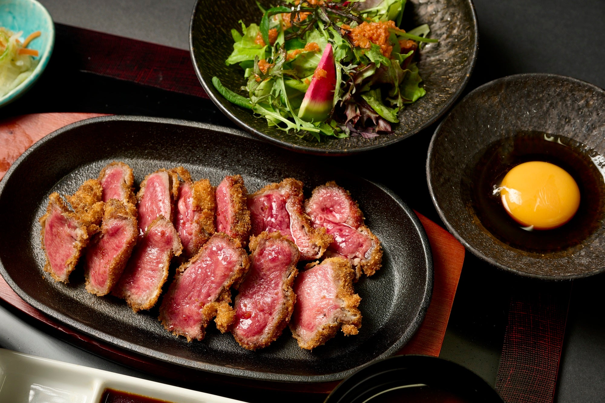 昼は石焼の牛カツ・牛タンカツ御膳、夜は選りすぐりの日本酒とともに、肉創作料理をご堪能いただけます。