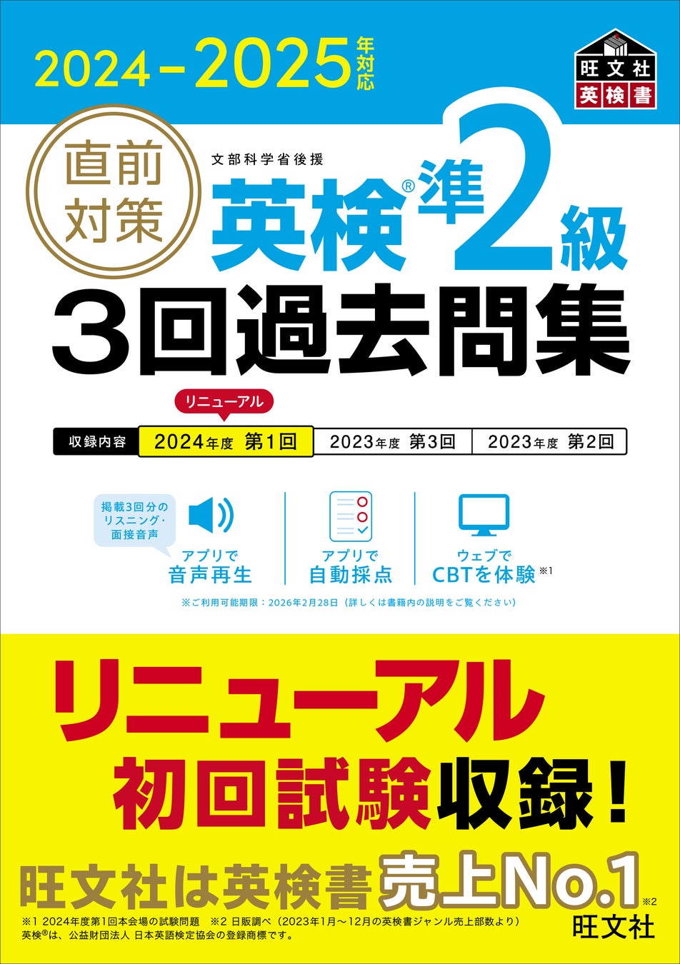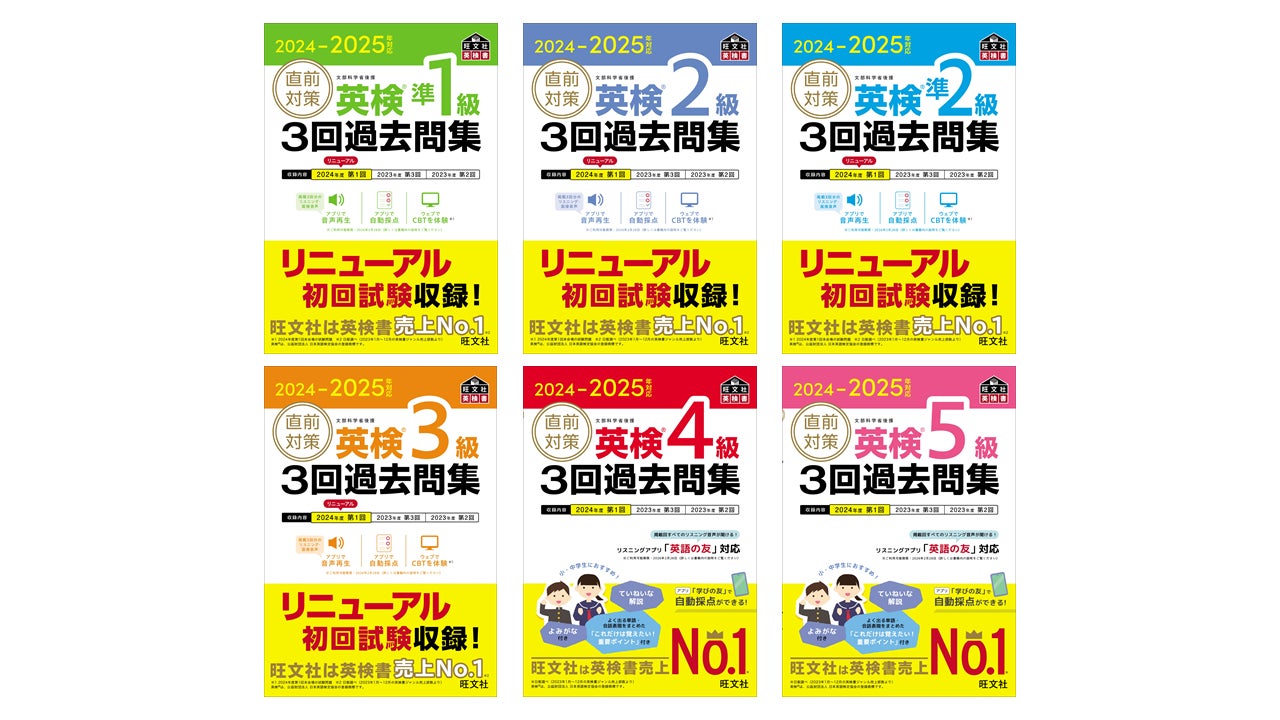 教育出版の株式会社旺文社(東京都新宿区、代表取締役社長 粂川秀樹)は、「2024-2025年対応 直前対策 英検(R)3回過去問集」シリーズ6点(準1級・2級・準2級・3級・4級・5級)を9月17日(火)に刊行いたしました。