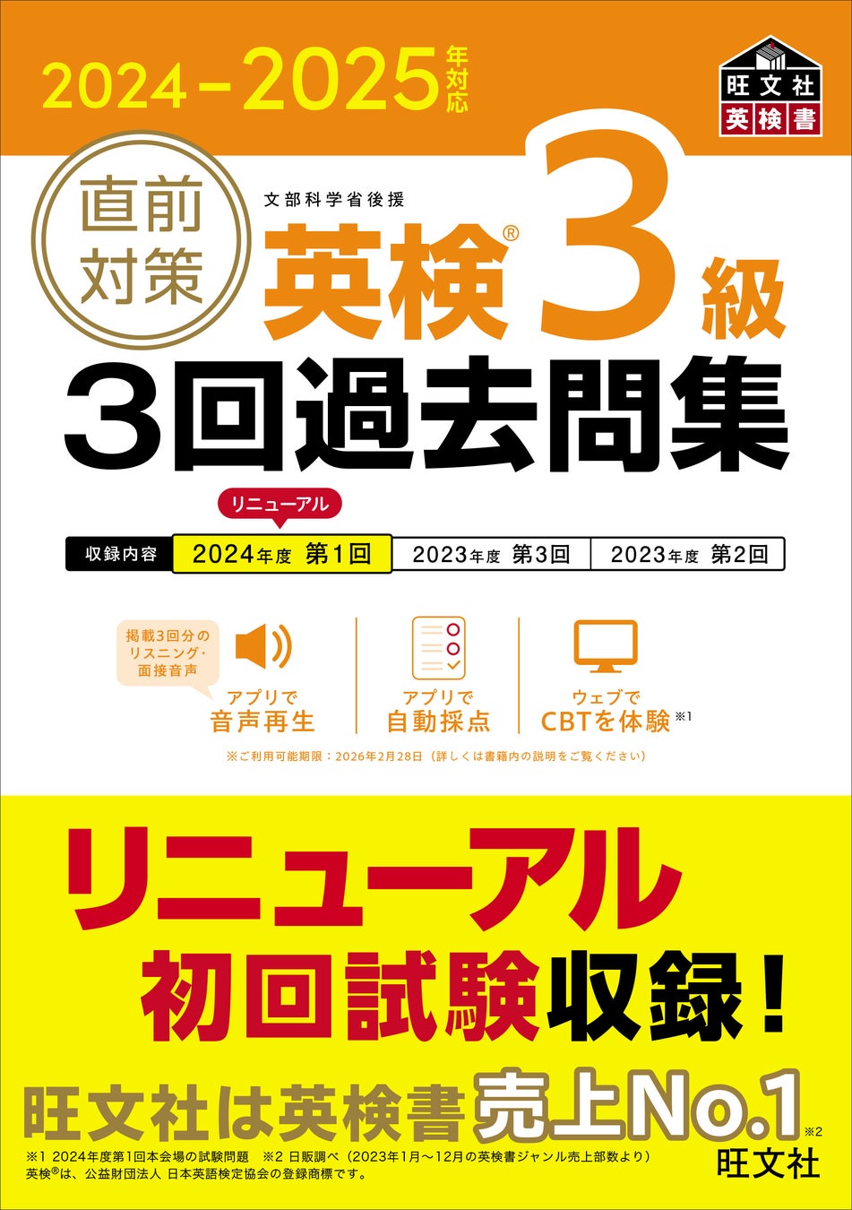 さらに、「CBT体験サービス」が付いており、書籍に掲載されたリニューアル初回の2024年度第1回試験をPC上で解くことができます(準1級~3級対応)。
