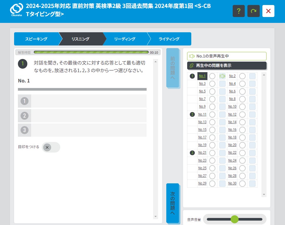 ※「CBT体験サービス」に搭載している問題は英検(従来型)のものであり、英検S-CBTの過去問ではありません。