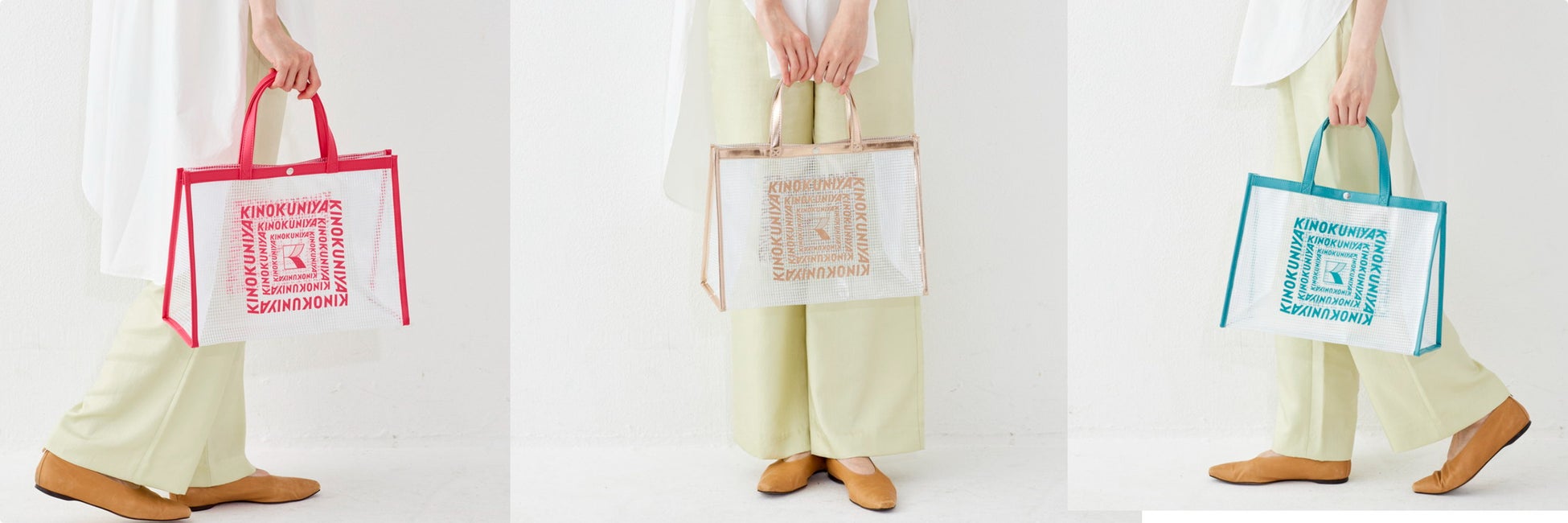 夏らしい爽やかな素材が人気の「クリアミディアムバッグ」、「クリアポーチ」が今年も紀ノ国屋から登場!夏のおでかけや旅行にはもちろん、クリア素材なのでプールサイドや温泉、サウナ等で大活躍。