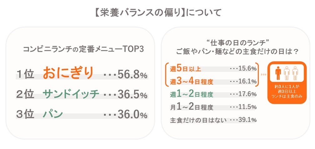 仕事の日のランチで週に3日以上ご飯やパンなどの主食だけの人は31.7%。