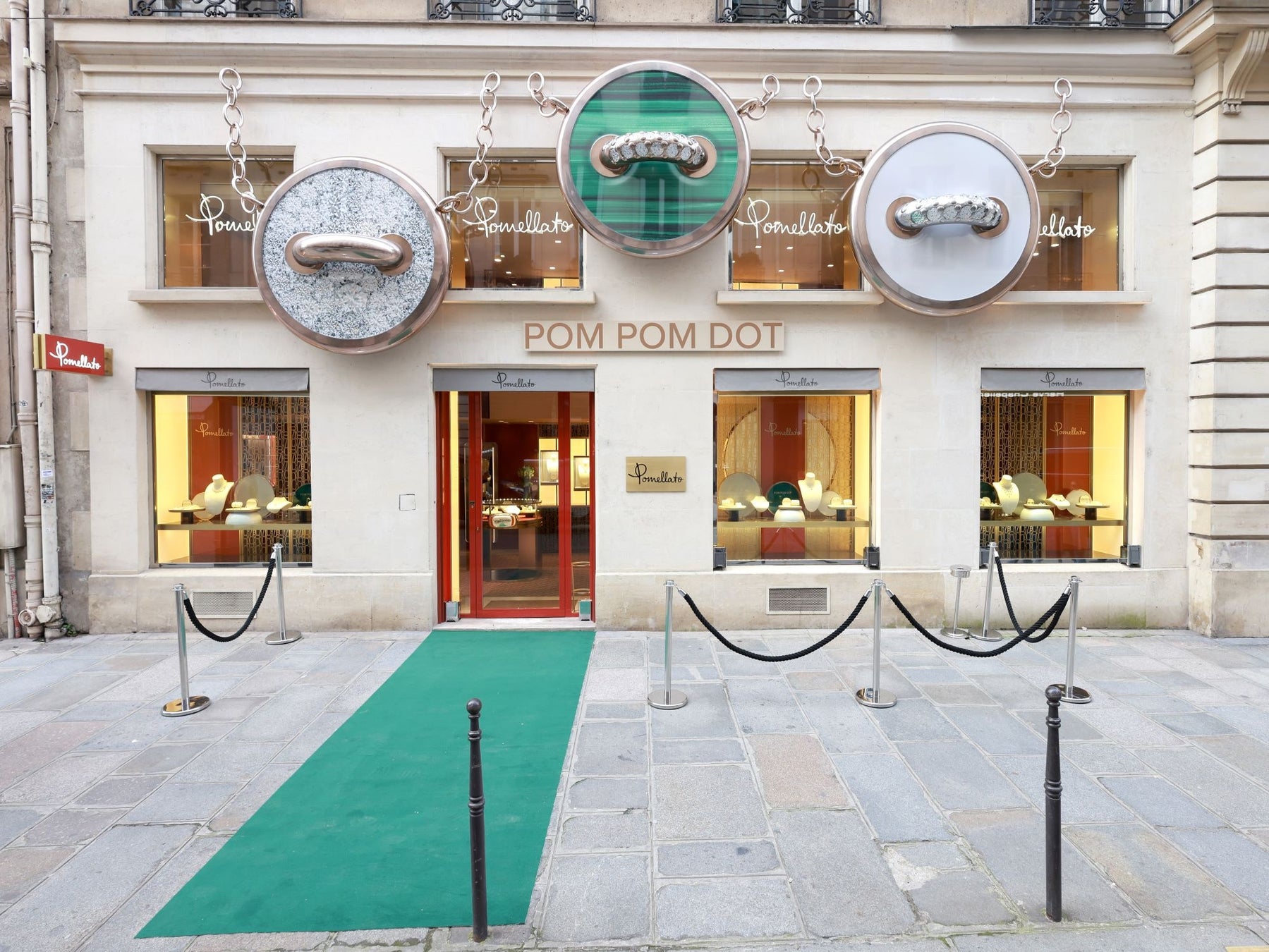 [2024年 4月 4日/パリ] ポメラートは、ハッピーな新作ジュエリー「ポムポムドット」の誕生を祝して、ボタンの装飾がほどこされたパリのブティックにて華やかなパーティを開催しました。セレブリティやインフルエンサー、そしてポメラートフレンドらが集まるなか、ボタンにインスピレーションを受けたプレシャスなコレクションを披露しました。新作コレクションは、ミラノの控えめなエレガンスを見事に表現しています。外観を巨大な「ポムポムドット」で飾りつけられたブティックで行われたカクテルパーティで迎えられたゲストらはパリのDJ Claire-Marieの明るいビートに合わせて時を過ごしました。