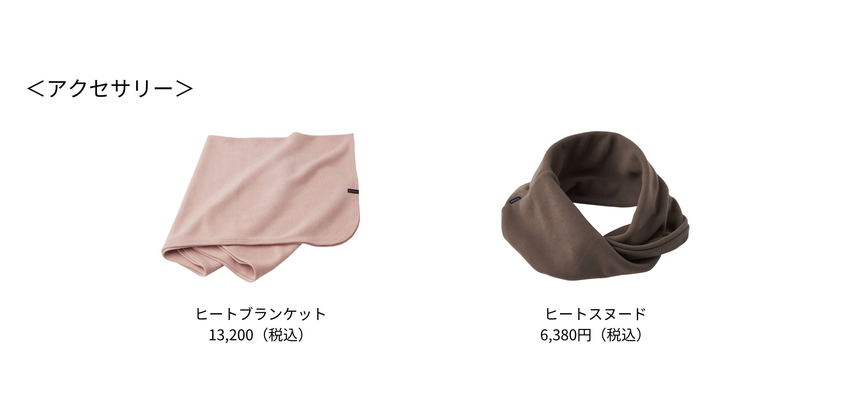 アクセサリー: ヒートブランケット 13,200円(税込)、ヒートスヌード 6,380円(税込)