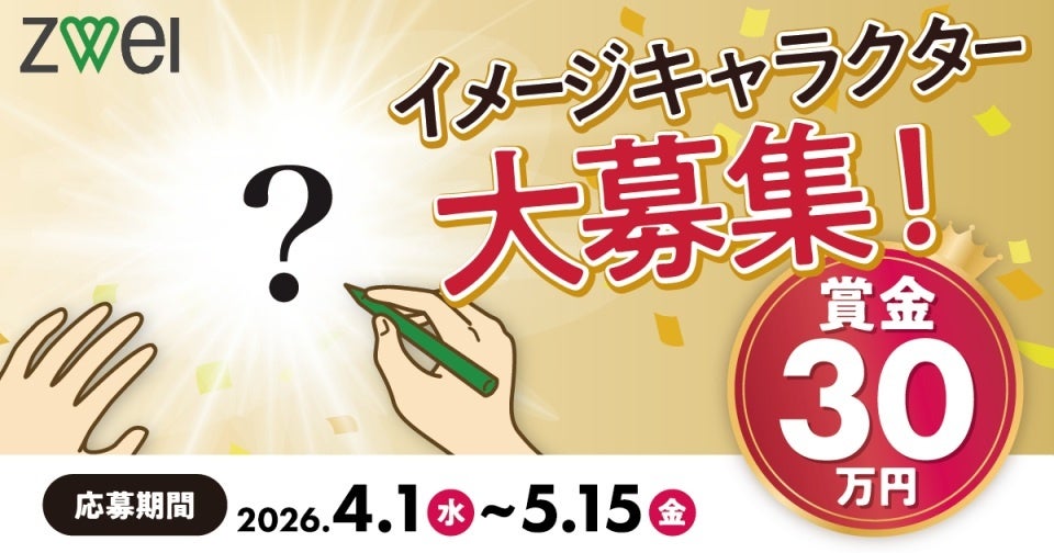 業界最多・全国54店舗のネットワークを持つ大手結婚相談所の株式会社ZWEI(ツヴァイ)(本社:東京都中央区、代表取締役社長:橋爪 みずほ、以下「ZWEI」)は、2026年4月1日(水)から5月15日(金)までの期間、創業以来初めて、公式イメージキャラクターのデザインおよびその愛称を全国より一般公募します。受賞作品は今後、ZWEIの広告や各種PR活動に活用予定で、大賞には賞金として30万円を贈呈します。