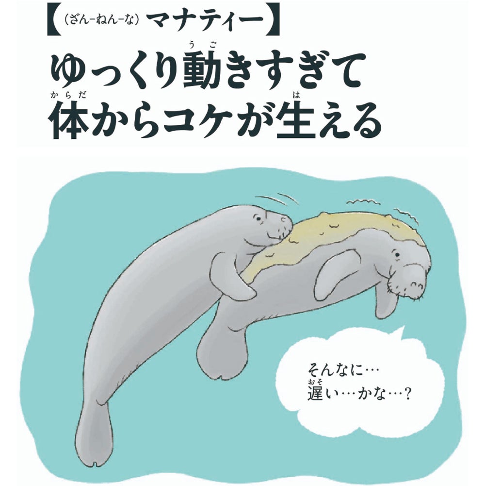 ざんねんないきものとは、一生けんめいなのにどこかざんねんないきものたちのこと。これまであまり語られてこなかった、生き物たちの“意外な一面”を紹介します。ちょっとざんねんに感じてしまう…、けれども一生けんめいに生きている、そんな新たな一面を知れて、生き物たちがより一層愛おしくなります。