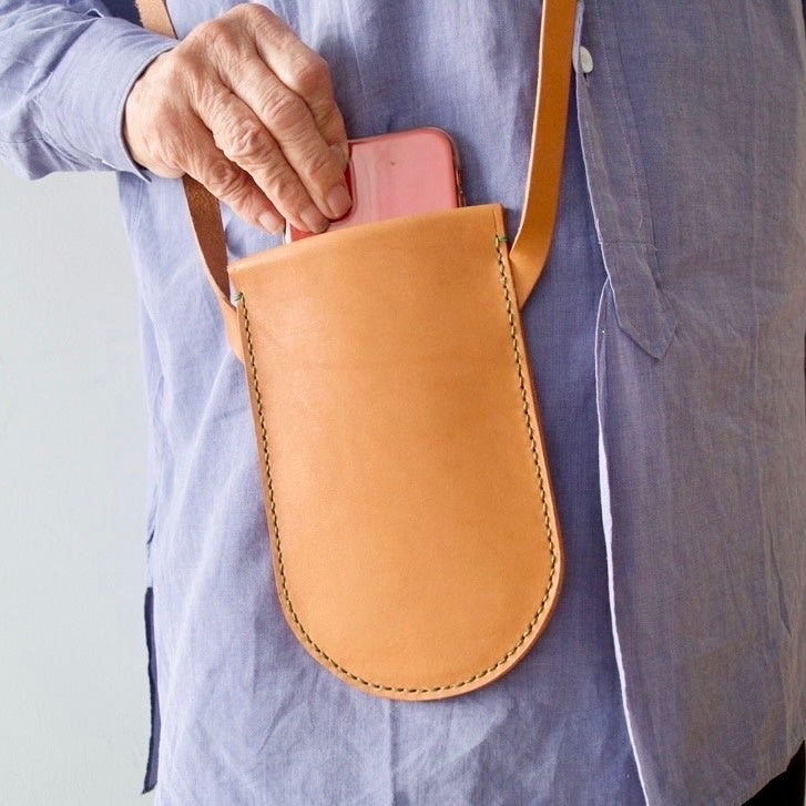 お出かけにも便利!スマホもすっぽり入る肩かけのポーチ。
