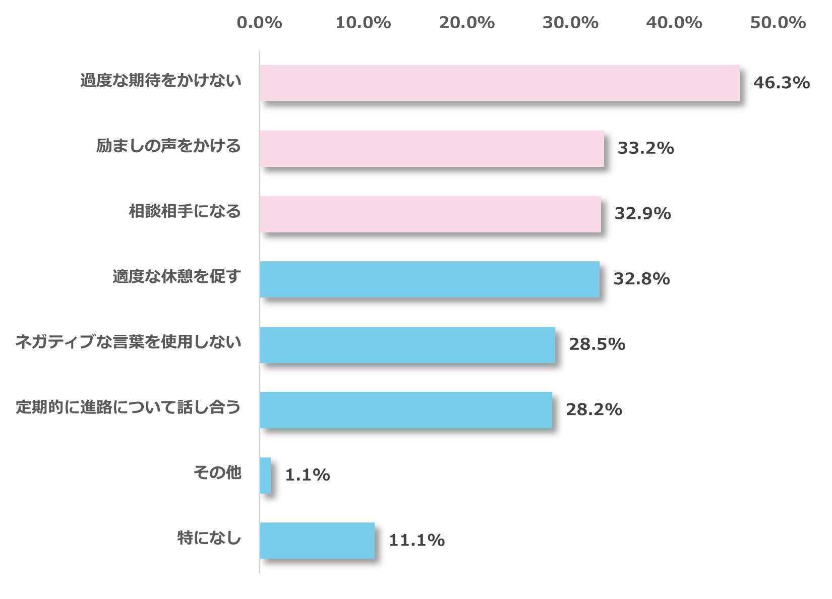 子どものモチベーション管理のために行っていること、最多回答は「過度な期待をかけない(46.3%)」
