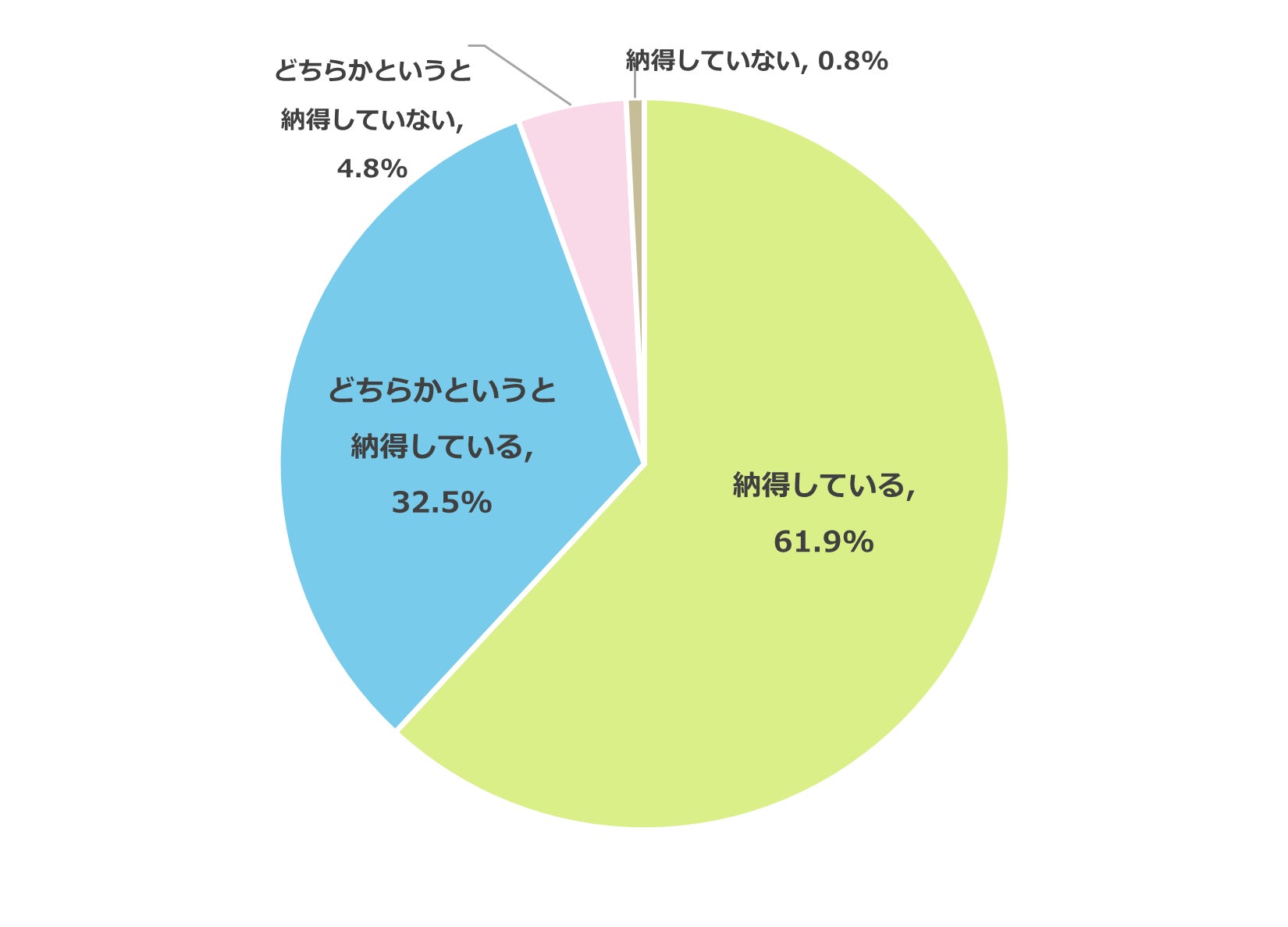子どもの志望校を把握していると回答した764名を対象に、子どもの志望校に納得しているか質問したところ、94.4%が「納得している」(納得している:61.9%、どちらかというと納得している:32.5%)と回答しました。