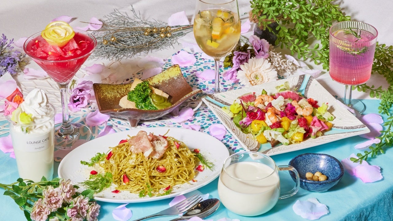 スパ ラクーア館内のレストラン&カフェで、エディブルフラワー(食用花)を使用した飲食メニューや、花の香りでリラックスできるドリンクメニューを提供します。