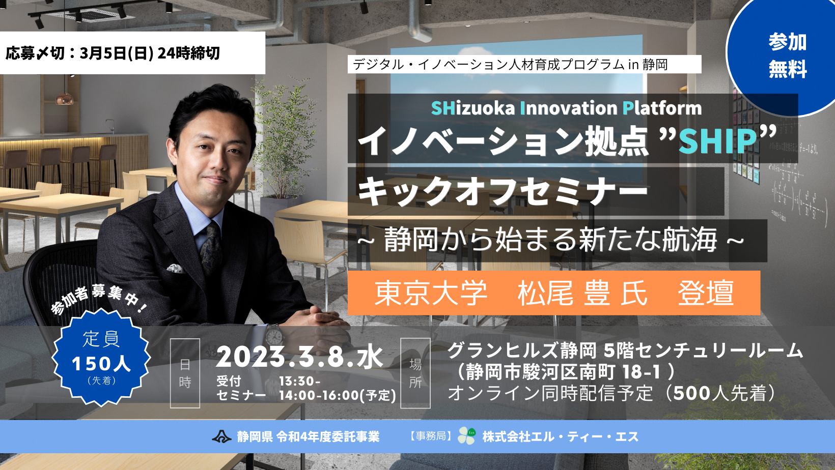 ■定員:会場 150人(先着順) オンライン配信 定員500人(先着順)