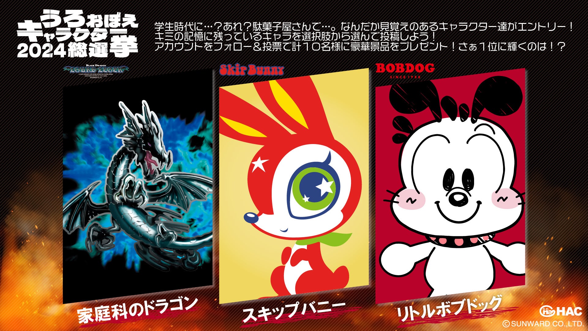 総選挙には平成生まれ男児御用達?の「家庭科のドラゴン」や駄菓子屋さんでお馴染みの「あの犬」など、サンワードを代表する3キャラクターがエントリー!