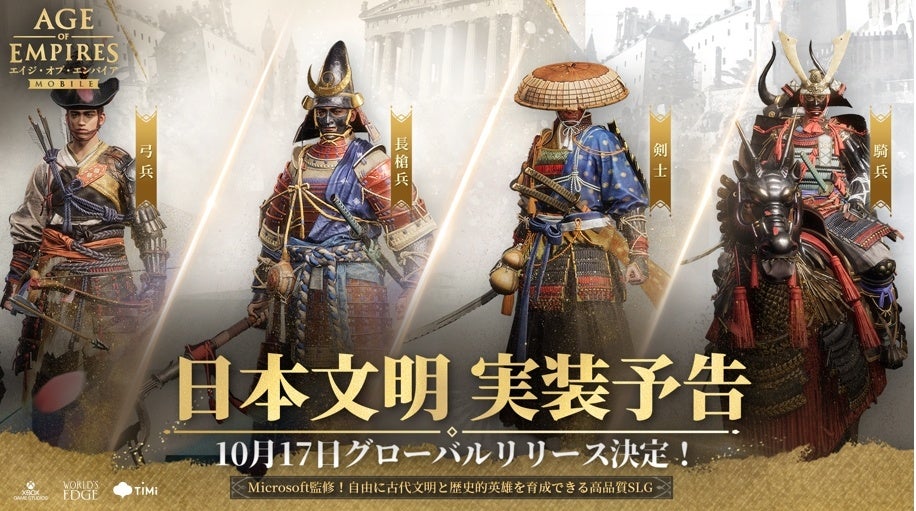 Microsoft監修『エイジ・オブ・エンパイア モバイル』本日、日本文明の実装を発表!10月17日(木)に世界同時リリース決定!将軍を率いて日本文明を築き上げよう!