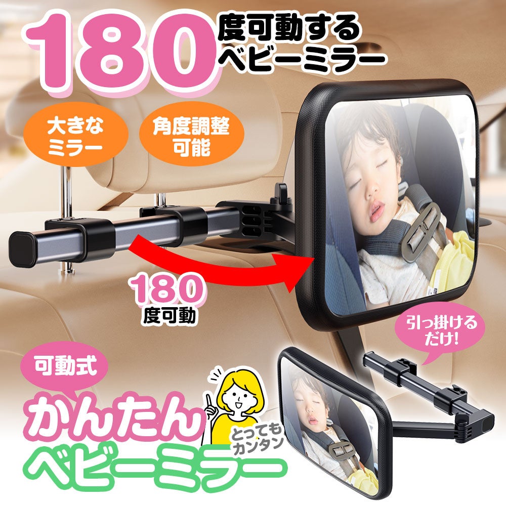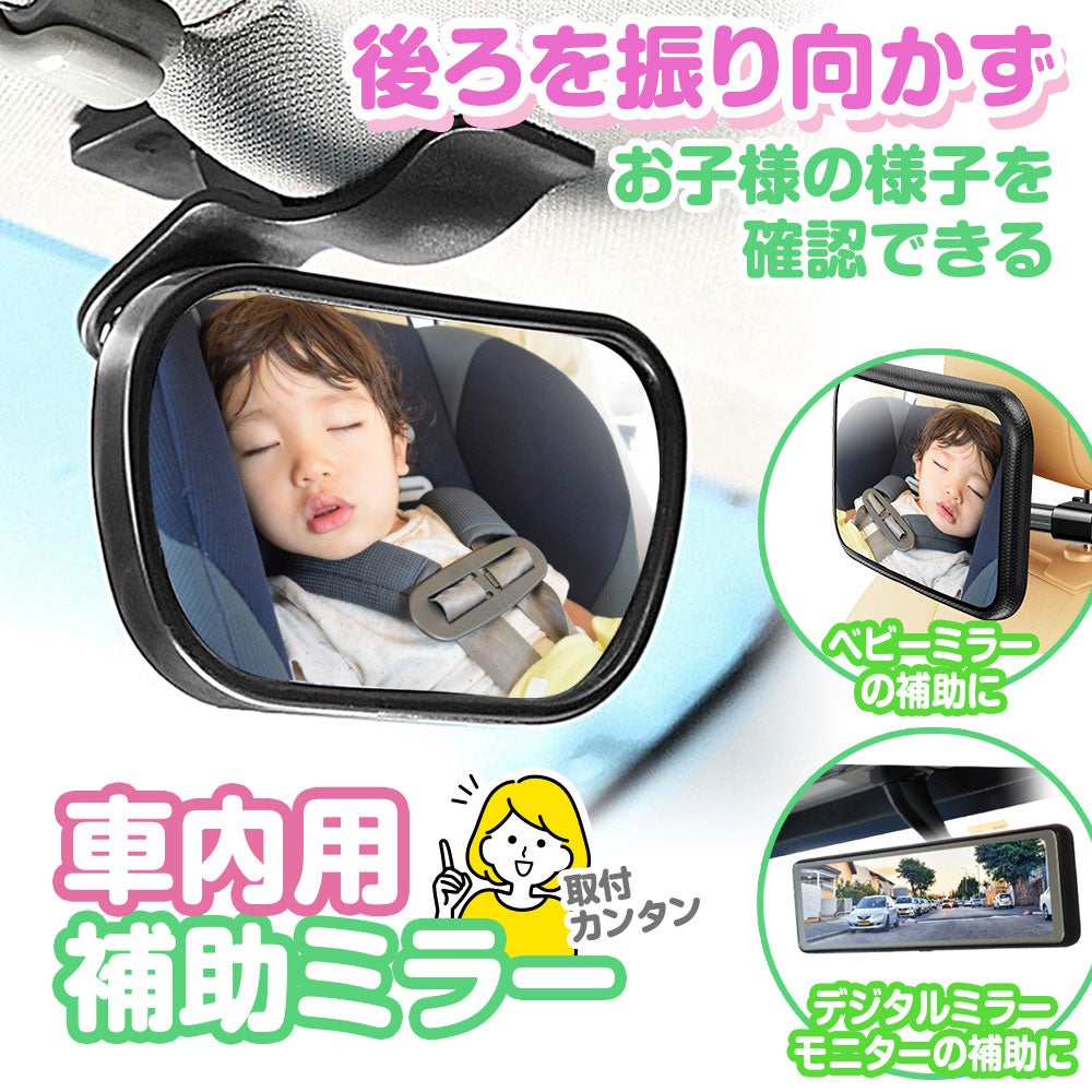 運転中に後ろを振り向かずに後部座席の確認ができるアイテム!誰でも簡単ワンタッチで設置お子様もドライバーも安心安全!