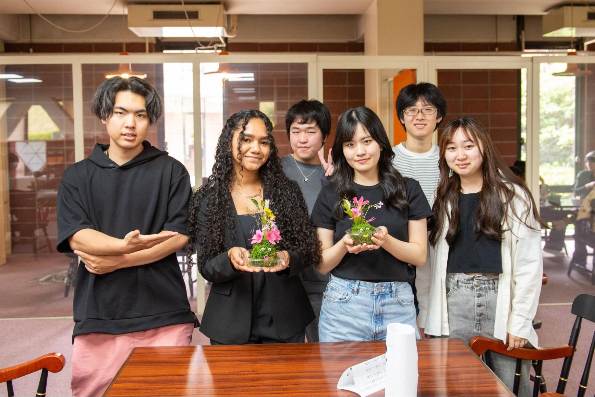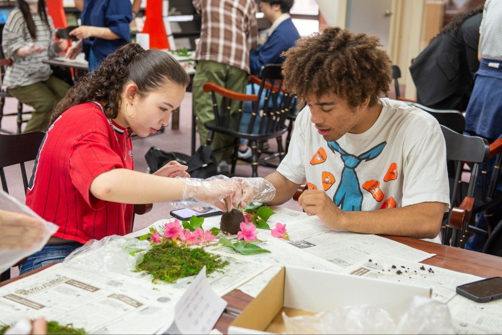 LE+プログラムの一環として、学生たちが苔玉について学ぶプロジェクトを実施