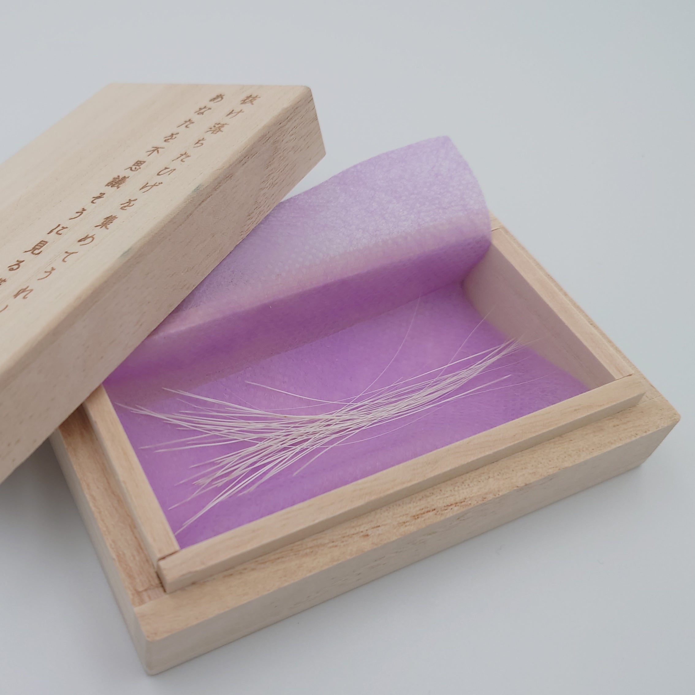 「猫のいる家に帰りたい ねこひげケース」は、愛猫の「ひげ」を保管できる桐製のケース。