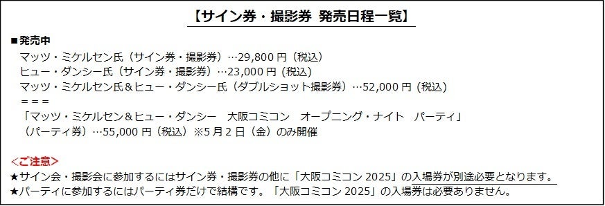 大阪コミコンでは、各来日セレブの“サイン券”をご購入頂くことでサイン会に、そして“撮影券”をご購入頂くことで撮影会にご参加いただけます。