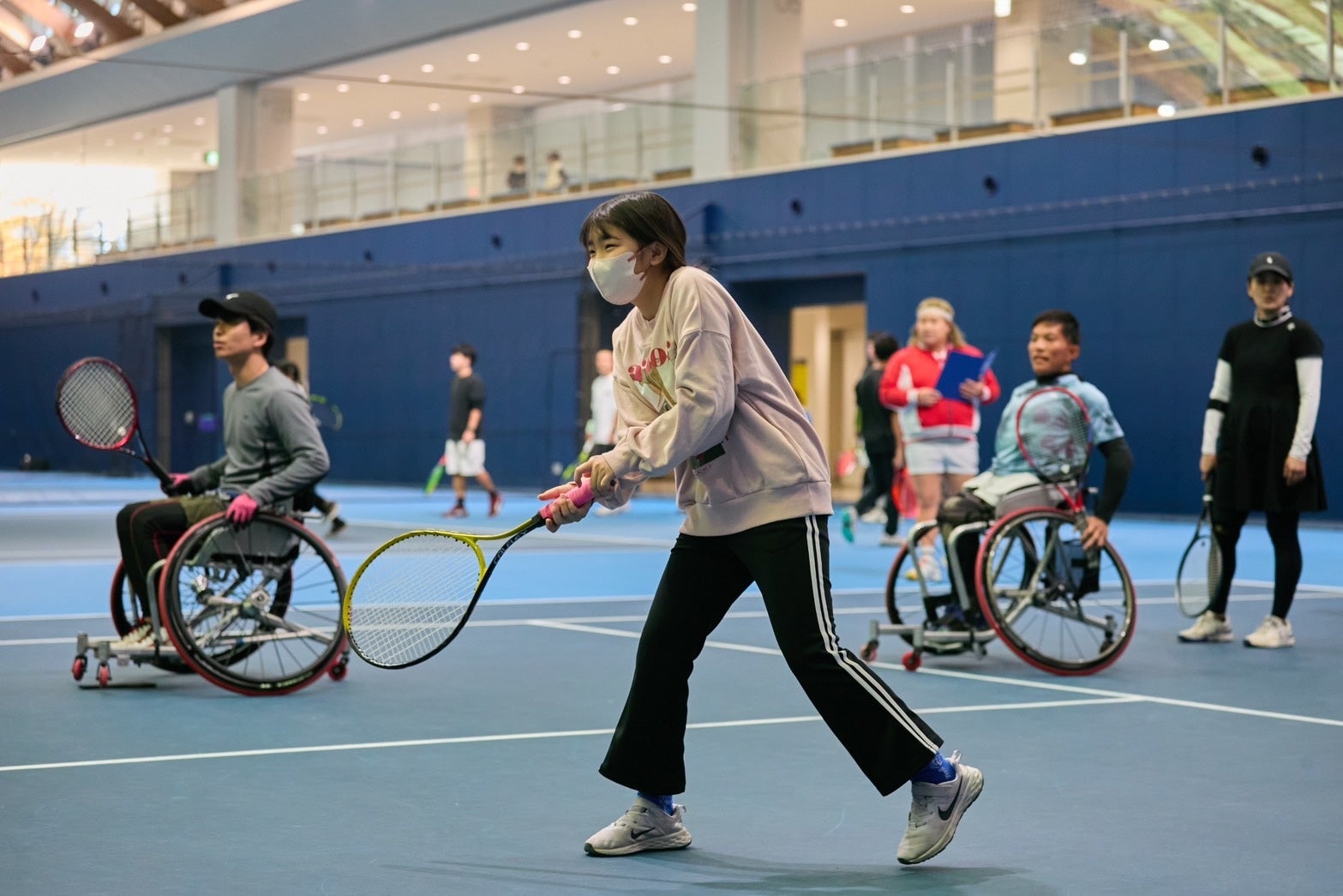 プロ選手やプロコーチによるテニスクリニック(初心者向けのテニス体験含む)や、車いすテニス体験が行われました。一流の指導者陣が参加者に寄り添いながら指導し、初心者から経験者までが楽しめる内容となりました。