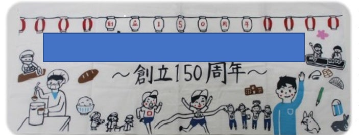 学校の創立150周年記念事業としてオリジナル柄の注染手ぬぐいを製作。在校生やOBにも配布し、唯一無二の思い出に残る品物となりました。