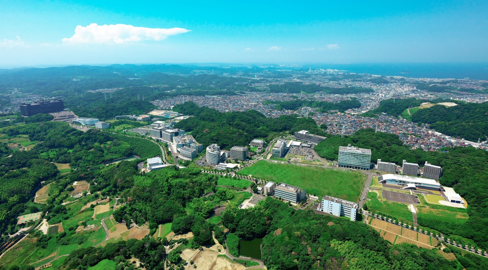 電波・情報通信技術を中心としたICT技術の研究開発拠点を目指し、平成9年(1997年)10月に開設されました。丘陵地の地形を生かした基盤整備により豊かな自然が保たれるとともに、実験電波が域外へ漏洩するリスクを最小限とすることができるなど、研究開発活動に適した環境が整えられています。