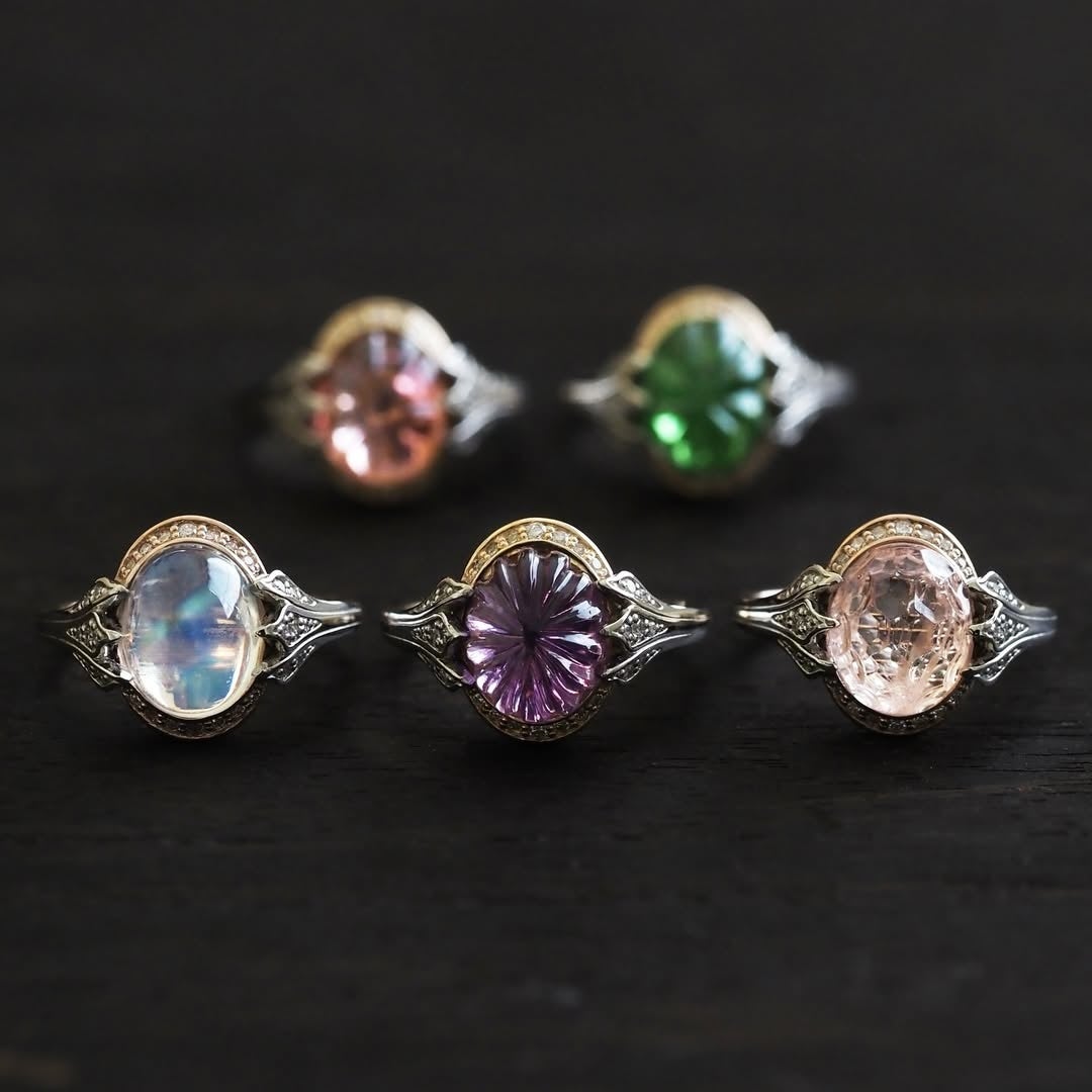 店頭では実際に手に取ってご覧いただき、枠に合わせながらその石が持つ個性を感じていただけます。