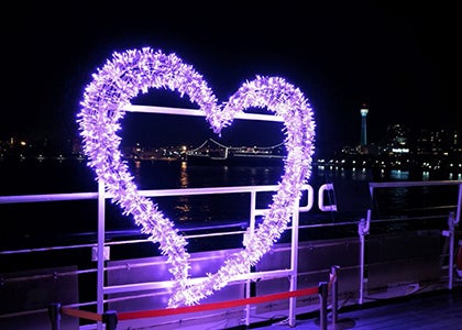 『ロイヤルウイング』は横浜港を周遊するエンターテイメント・レストラン船としてこれまでも多くのお客様にご利用いただいております。視界を遮ることのない船上からは横浜の美しい夜景を堪能でき、またオープンデッキには『恋人の聖地』と呼ばれる所以となった2,000球の光が生み出すイルミネーション「ジュエルハート」があり、大切な人と一緒に素敵なひと時をお過ごしいただけます。