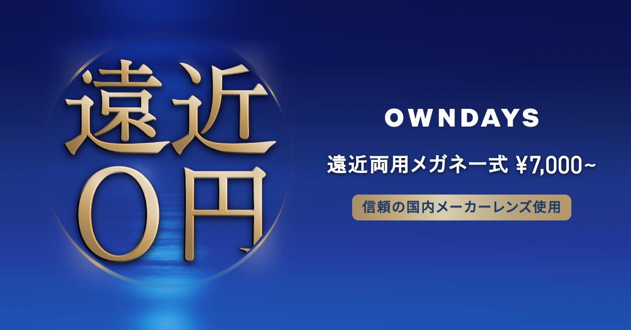 OWNDAYSでは、フレームを問わず遠近両用レンズの追加料金を0円※で提供しているため、遠近両用メガネ一式を7,000円からお求めいただくことが可能です。初めての方にもファッション感覚でお選びいただける豊富なフレームに加え、専門スタッフによる無料の視力測定も承っています。お近くの店舗にぜひ、足を運んでみてください。