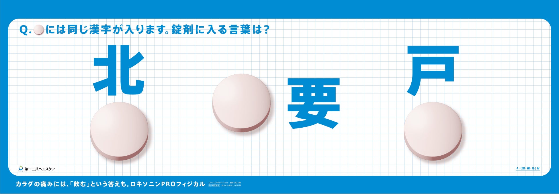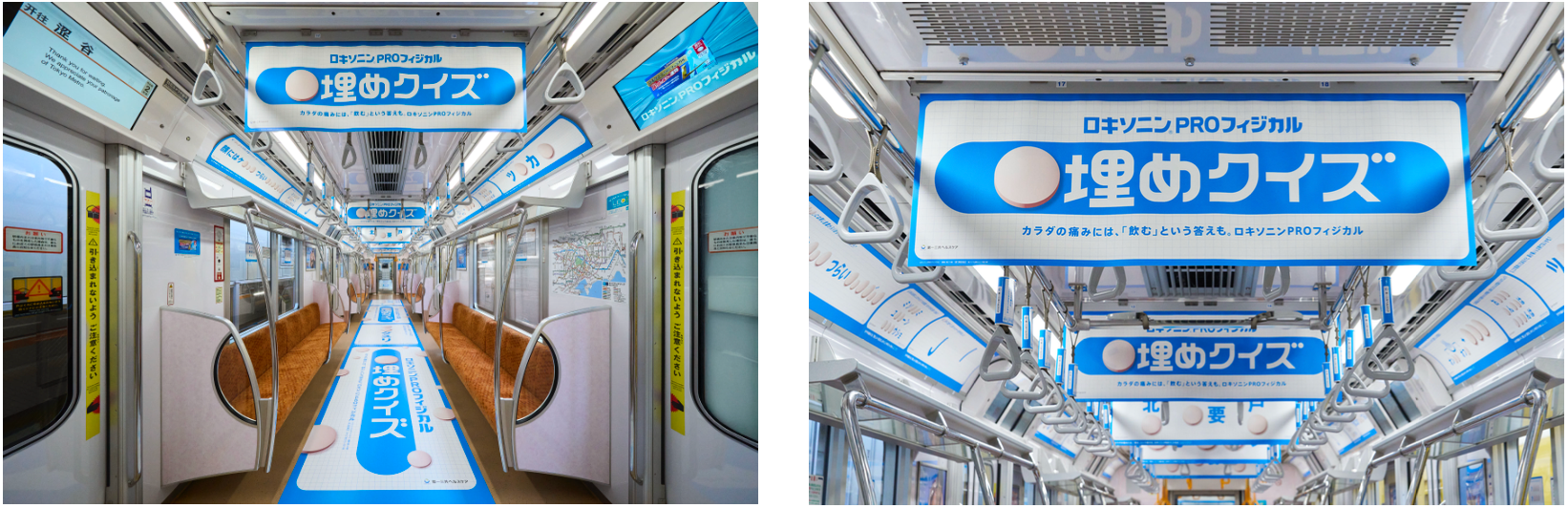 腰・肩などのカラダの痛みには、「飲む」という答えも。ロキソニン®PROフィジカルが錠剤をモチーフにした“穴埋めクイズ”で東京メトロ銀座線・丸ノ内線をジャック!