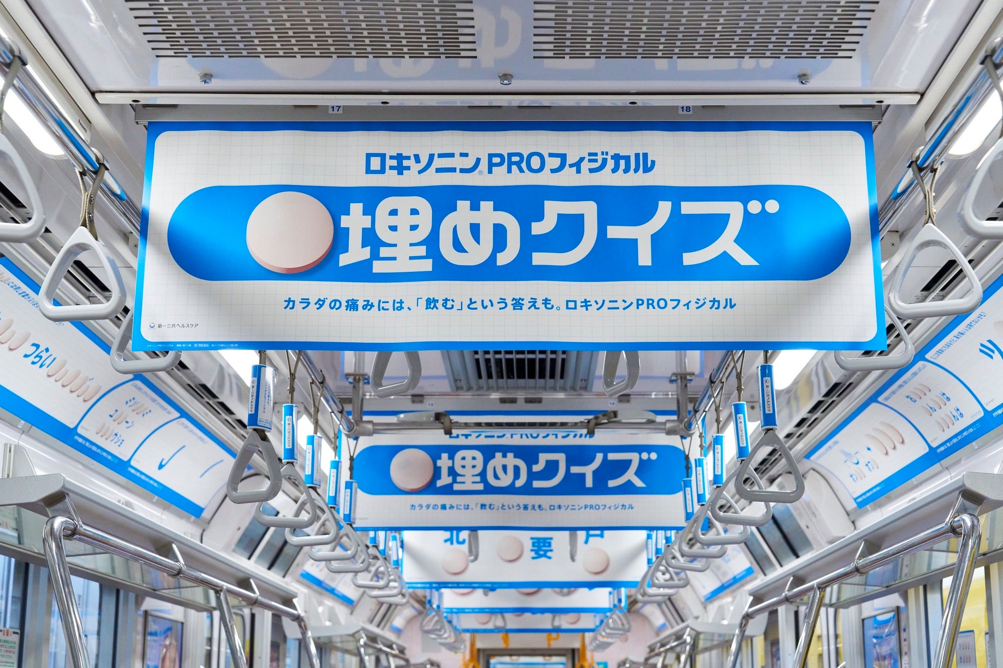 第一三共ヘルスケア株式会社(本社:東京都中央区)は、腰や肩などつらい身体の痛みによく効く内服薬「ロキソニンPROフィジカル」(OTC医薬品)のトレインジャック広告「ロキソニンPROフィジカル “穴埋めクイズ”」を、2025年12月1日(月)より、東京メトロ銀座線および丸ノ内線の一部編成で展開します。