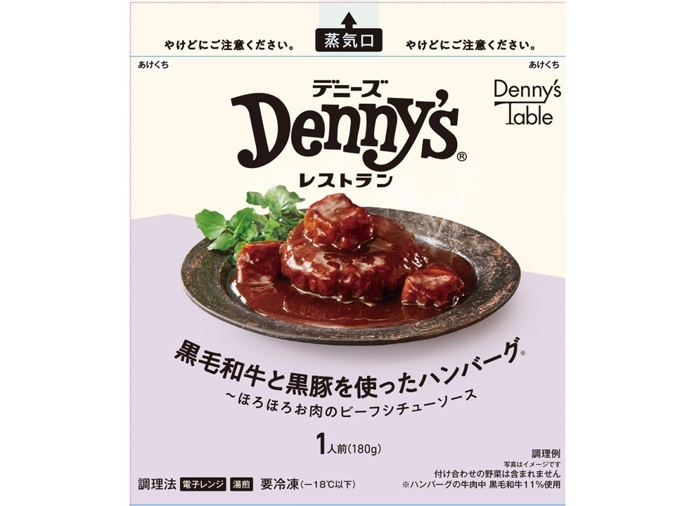 黒毛和牛・黒豚使用の合挽ハンバーグにデニーズ店舗でも使用している