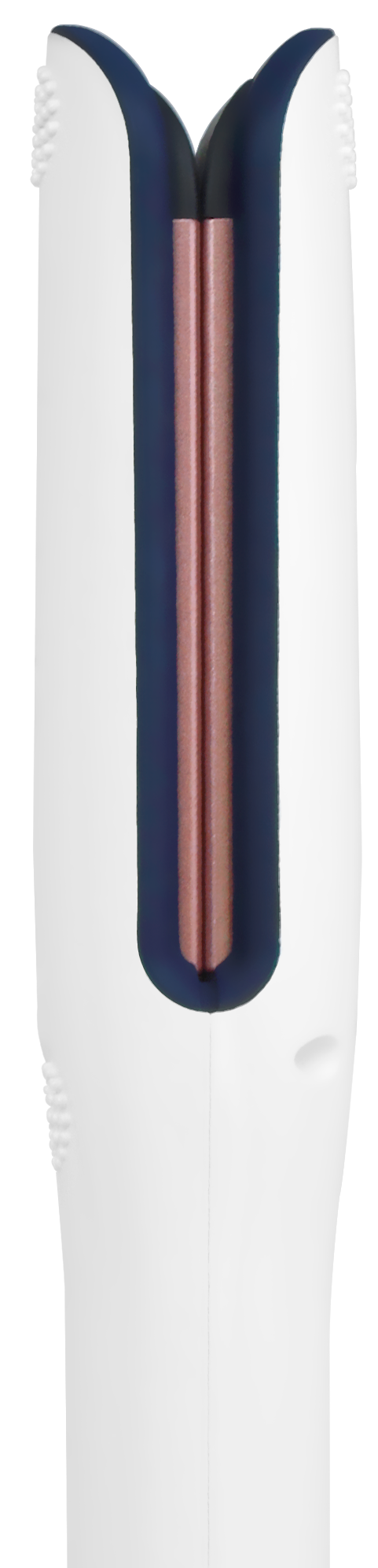 Kiyo(i18010WH)はプレートが固定され、スリットに髪を差し入れて滑らせます。その隙間は1mmもなく、手首のひねり加減で滑らかに沈むクッションプレートが優しく密着する仕組み。誰が扱っても適量ずつストレートやカールを作ることができるのです。