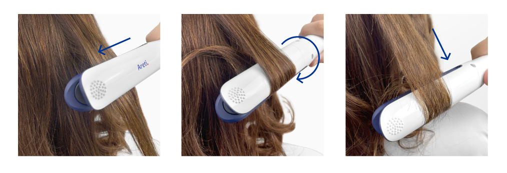 しかも、髪をスリットに差し入れたまま本体を回転させ、そのままゆっくり滑らせるだけでしっかりカールも付くすぐれもの!