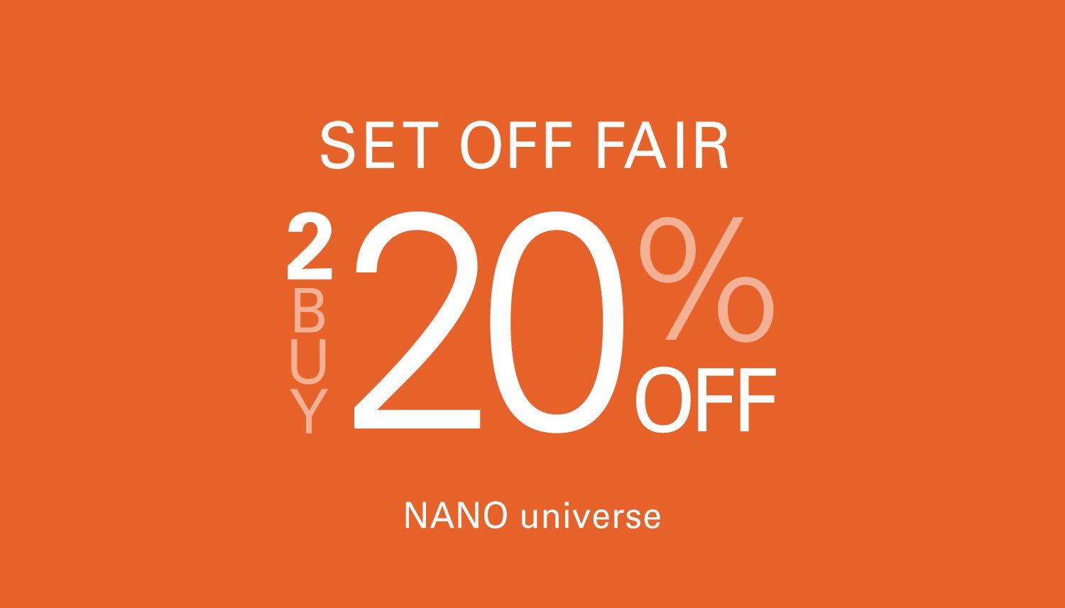 アウトレットを除くナノ・ユニバース全店舗で7月1日(金)~7月10日(日)までの期間中、3000円以上(税抜き)の商品を2点以上お買い上げ頂くと20%OFFでお求めいただけます。新作はもちろんセール品も対象なので、セール価格からさらにお買い得に。