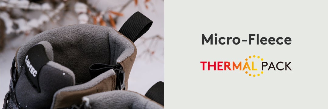 空気層を多く含むインナー素材が足全体を包み込み、温かさを持続する「サーマルパック」を搭載。さらに、肌触りが温かい「マイクロフリース」を採用し、靴内の湿気を吸収し乾燥させる機能も併せ持ちます。