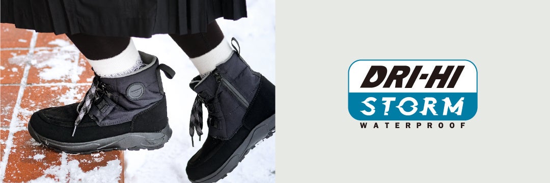 アッパーには高い透湿性能を持つ透湿防水メンブレン「ドライハイ ストーム」が搭載。ソール接着面からは漏水しにくい設計のため、4cm×4時間の防水性能を備えています。雪はもちろん雨の日でも十分な機能を発揮します。※耐水圧(10,000mm)/ 透湿度(5,000g/m2/24hr)