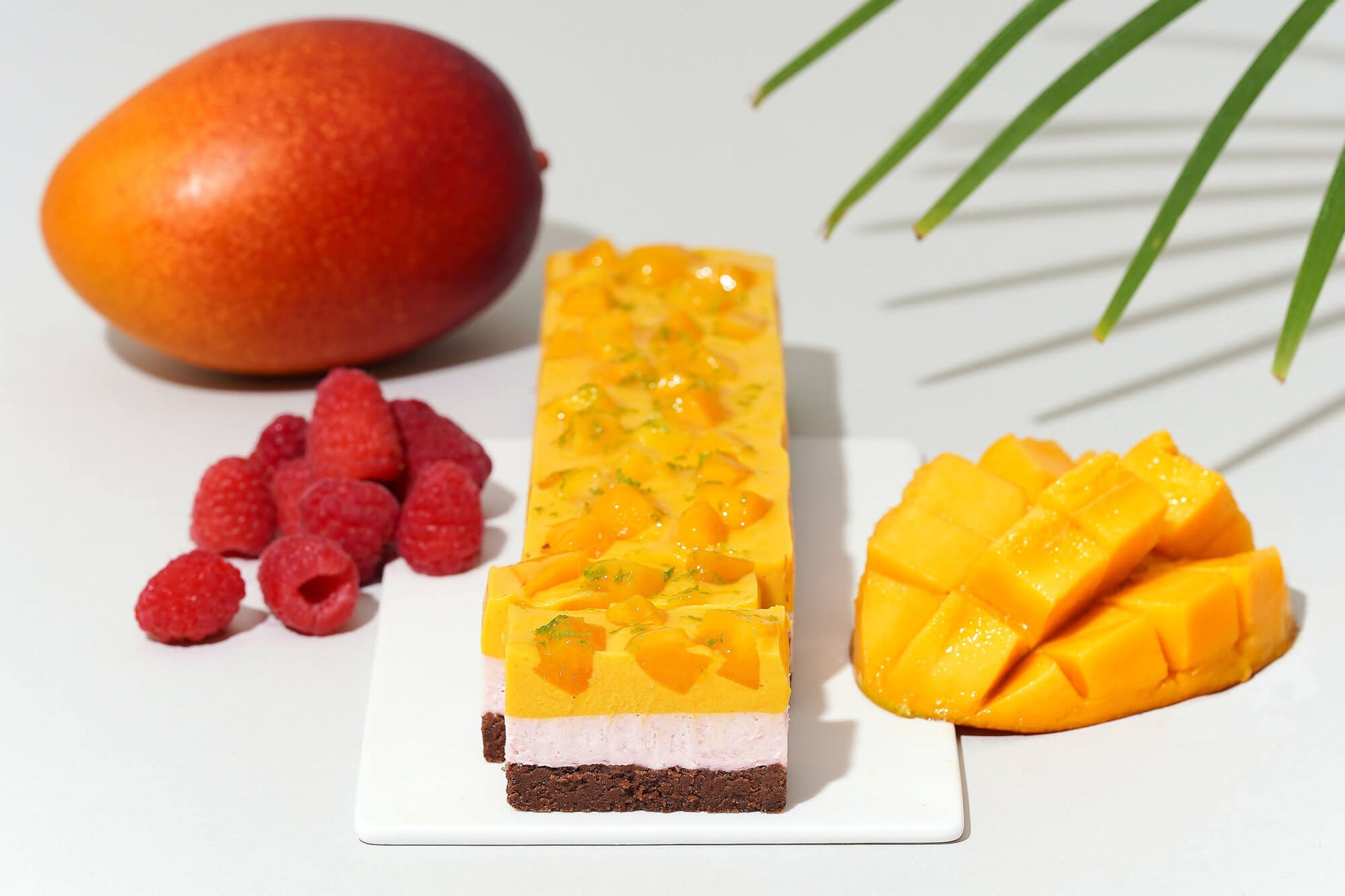 フランボワーズとチョコレートが、濃厚マンゴーを引き立てる3層仕立て