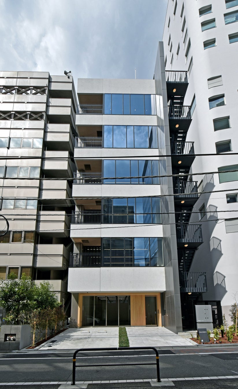 ~多様な魅力を持つエリアの境界に位置する、白を基調とした清潔感のあるデザインのオフィスビル~