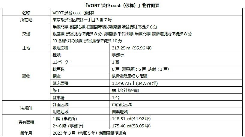 「区分所有オフィス®」を主軸に資産形成コンサルティングを行う株式会社ボルテックス(東京都千代田区 代表取締役社長 兼 CEO 宮沢 文彦、以下当社)は、「VORT渋谷east(仮称)」を取得しました。