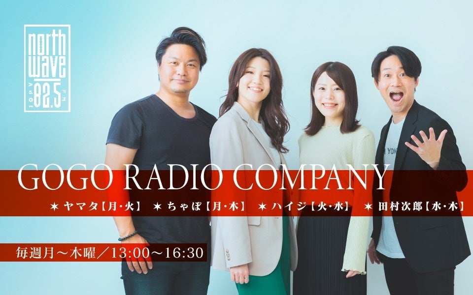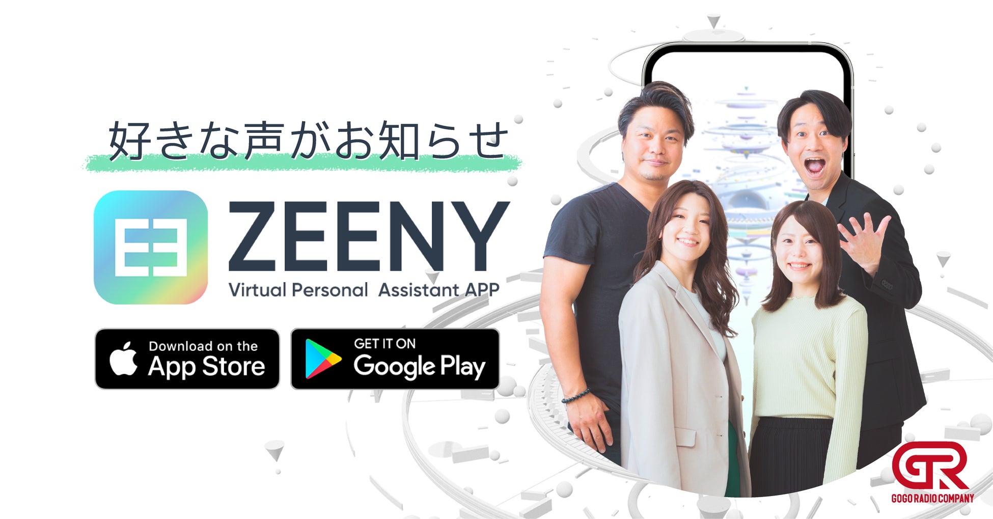 FMノースウェーブの人気番組「GOGO RADIO COMPANY」から担当DJ「ヤマタ・田村次郎・ハイジ・ちゃぼ」の目覚ましや時報のアシスタントアプリ「Zeeny アシスタント」で期間限定配信開始