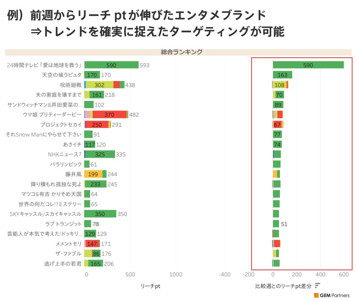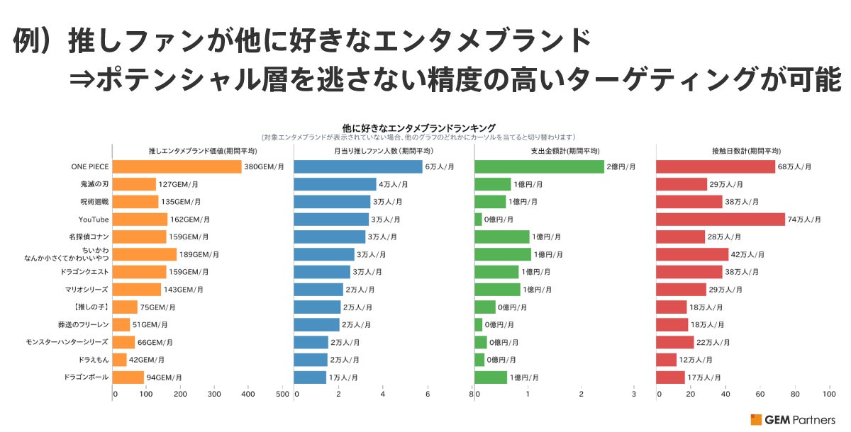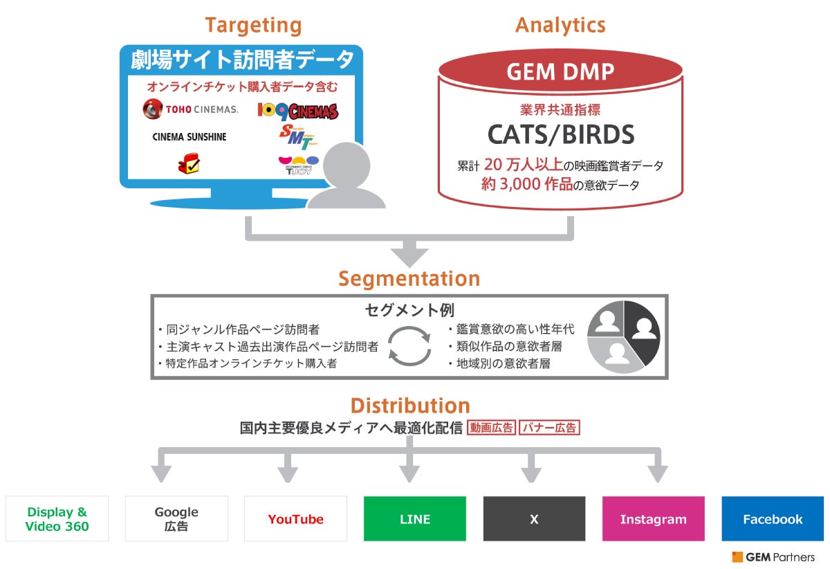 また、GEM Partnersは国内最大級の映画鑑賞者を主軸としたエンタメオーディエンスデータを保有しており、エンタメ意欲層に対して効果的に広告プロモーションを行うことが可能です。