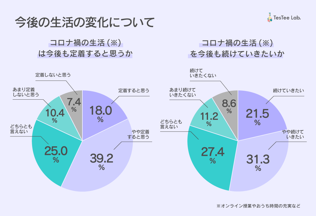 - 「現在の生活を継続させていきたい」リモート授業やおうち時間の充実の継続を望む人が5割以上