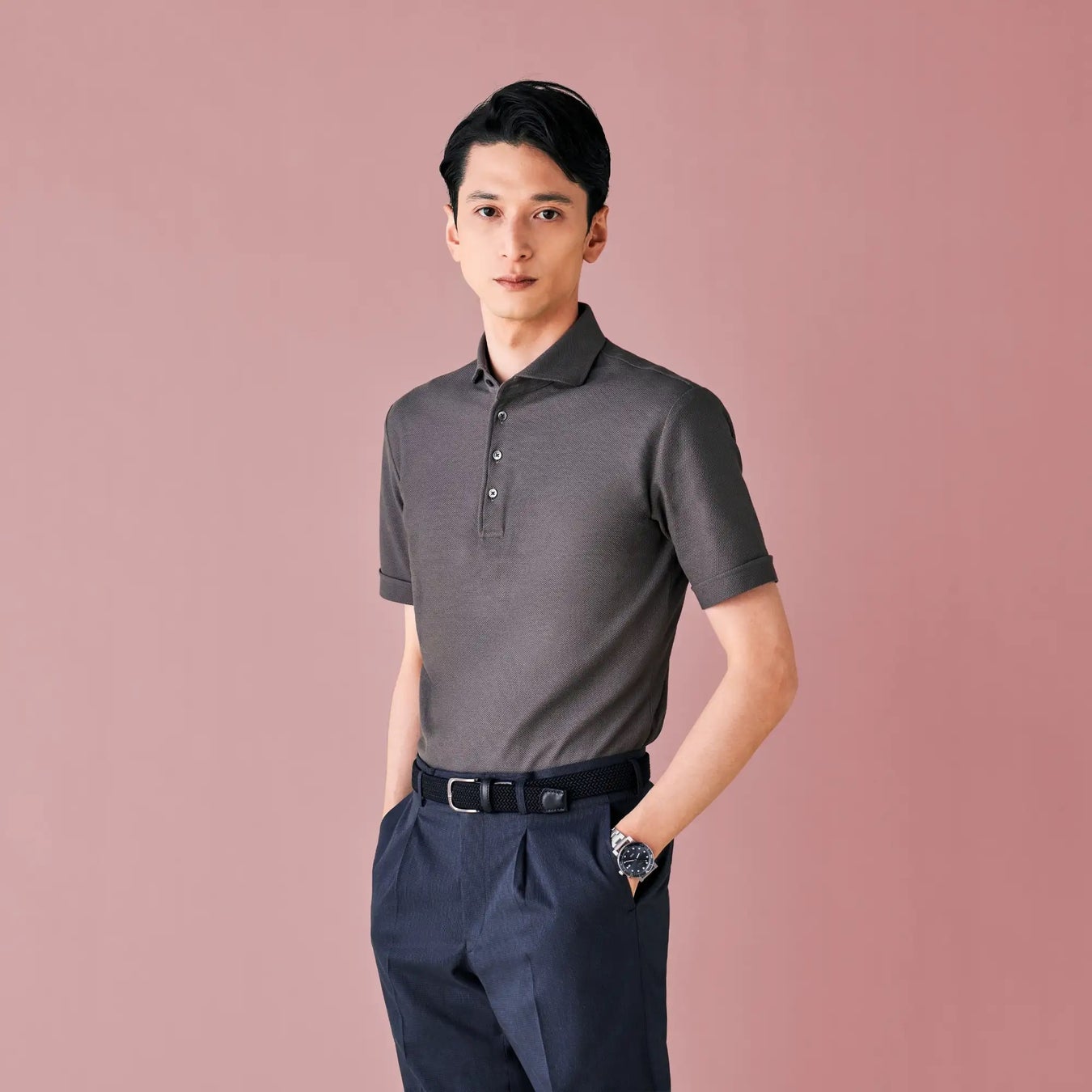 ポロシャツはビジネスシーンではカジュアルすぎるという方にも選んでいただきやすいアイテムです。