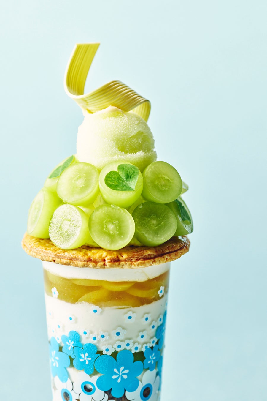ハーブをまとったエレガントなシャインマスカット&ピーチのパフェ