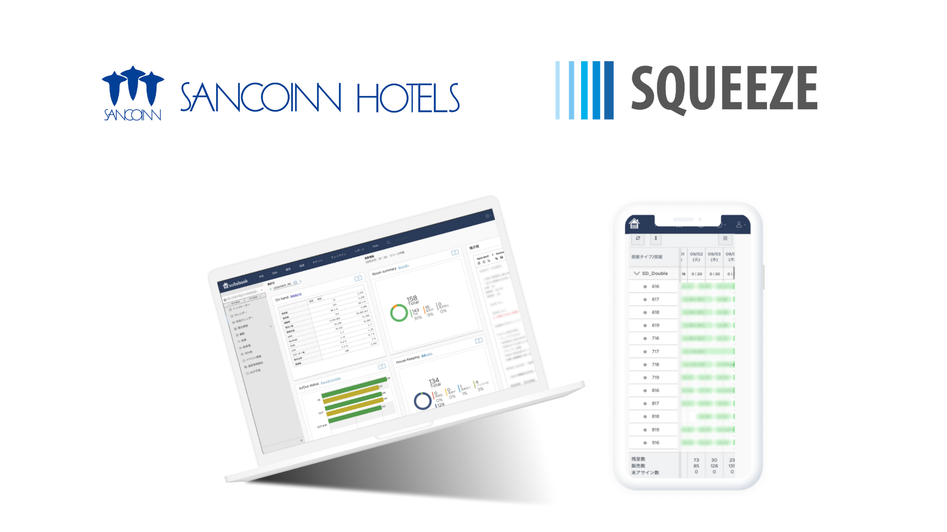 ホテル・観光業界のAX(AI Transformation)を推進する株式会社SQUEEZE(本店:北海道北広島市、代表取締役CEO:舘林 真一、以下「SQUEEZE」)は、株式会社三交イン(代表取締役社長:長井 康明、本社:名古屋市中村区)が運営する「三交インホテルズ」全15施設において、SQUEEZE開発の次世代オペレーションプラットフォーム「suitebook」および「suitebookKIOSK」を導入することをお知らせいたします。