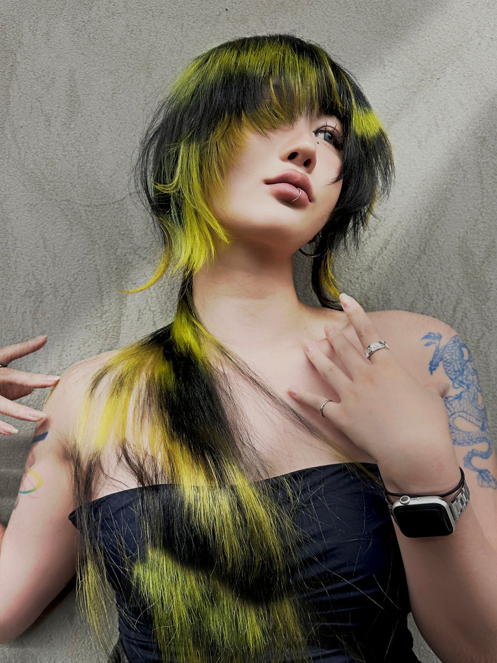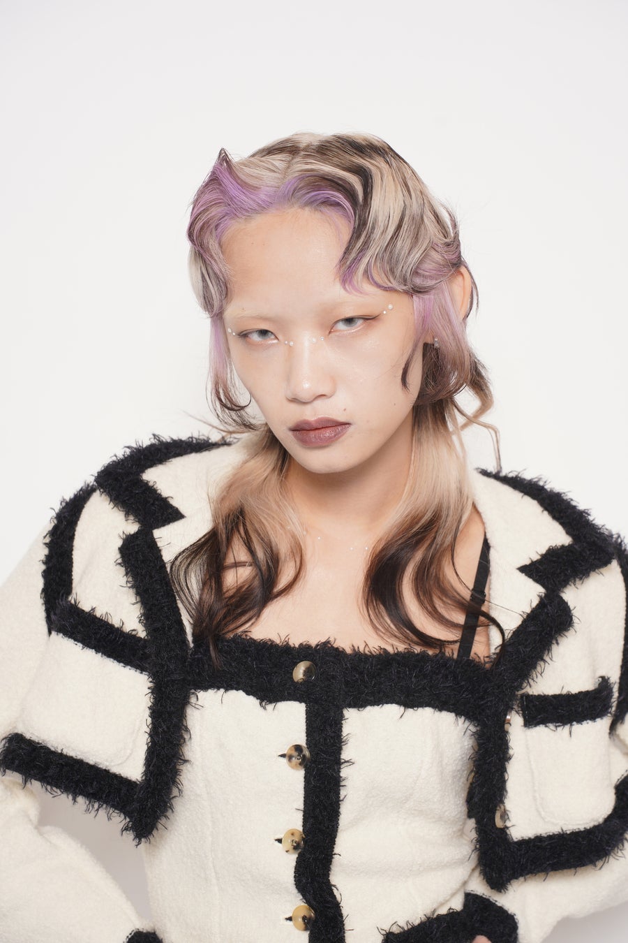 グローバルアワードを受賞でき、とても嬉しいです。日本に来てショーを楽しみながら、他のデザイナーの方々と交流できたことも貴重な経験でした。今回は“重なり”というテーマのもと、積み重なることで生まれるシナジーを表現。カットではあえてつながらない段差をつくり、異なる色同士の調和を意識しました。普段から少し強めのユニークなスタイルが好きなので、これからも自分らしい道を進み続けたいです。