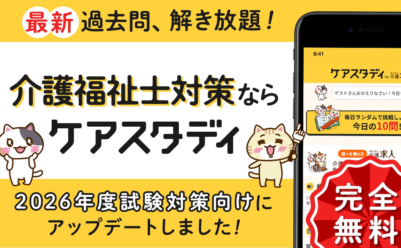 株式会社クーリエは、完全無料の介護福祉士試験対策アプリ『ケアスタディ』を2026年試験対策向けにアップデートいたしました。今回のアップデートにより、2025年1月に実施された最新試験(第37回)の過去問が収録され、さらに充実した内容になりました。
