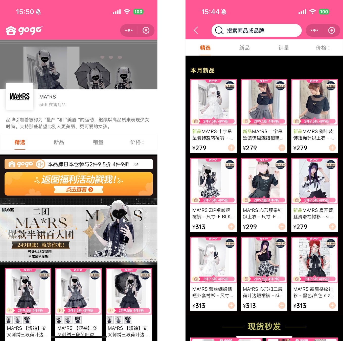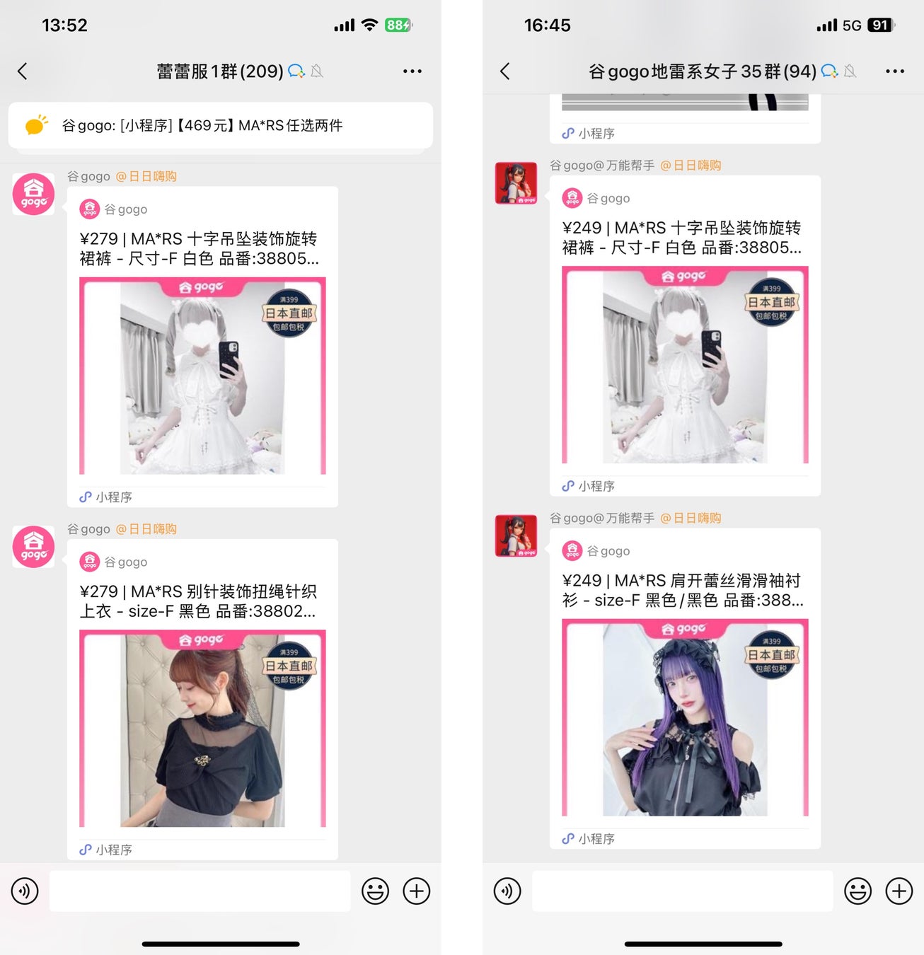 中国で最も普及しているソーシャルメディアアプリ「WeChat」内で簡易版のアプリプログラムが利用できるミニプログラムの「谷gogo」は、累計ユーザー数が66.8万人で、二次元アイテムやロリータファッションなど、Z世代の女性向け商品を幅広く取り扱っています。