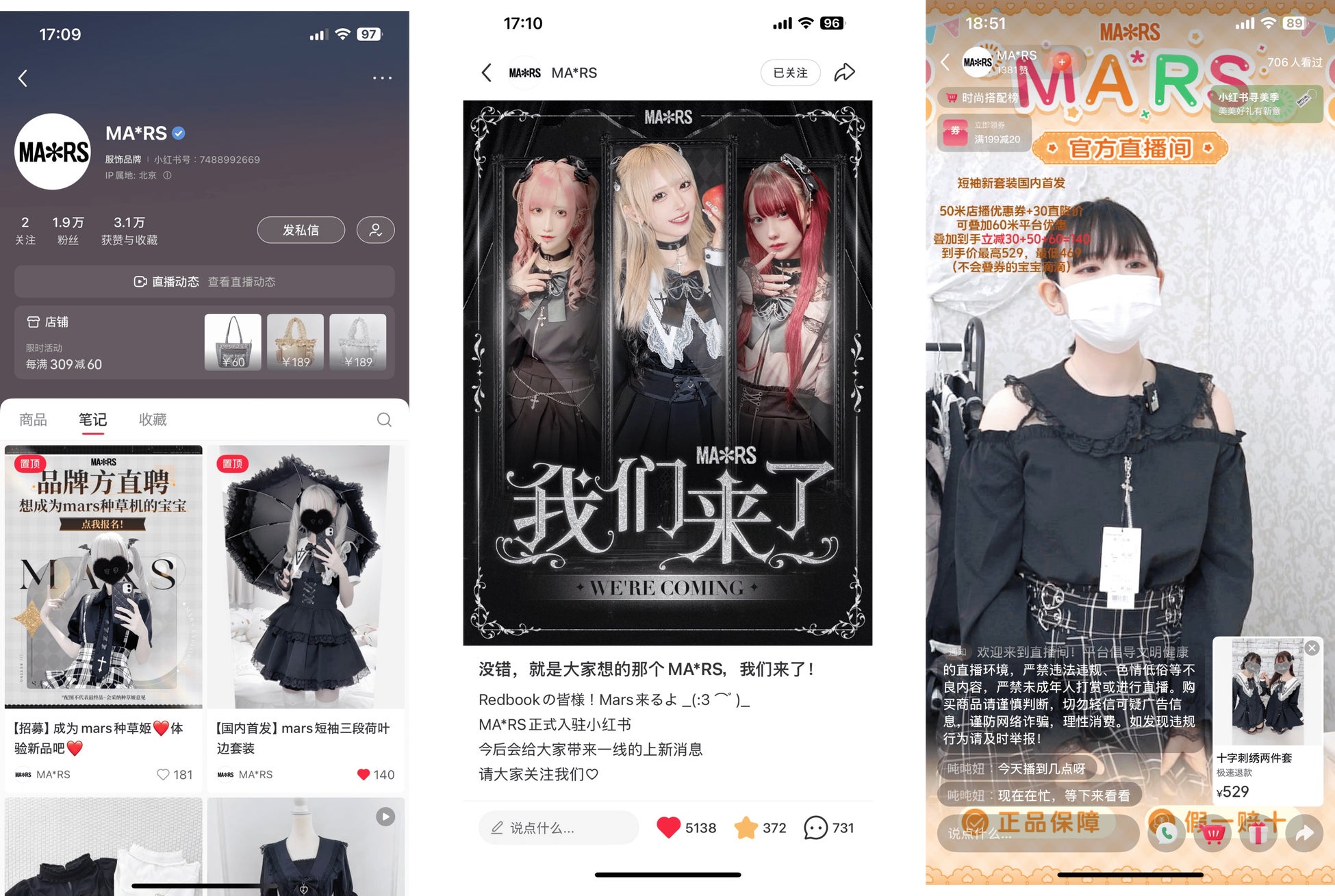 「ショッピングに国境はない」をスローガンに、中国消費者向け日本商品特化型越境ECプラットフォーム「豌豆(ワンドウ)」を運営するインアゴーラ株式会社(代表取締役CEO:翁 永飆 所在地:東京都港区 以下「インアゴーラ」)は、MARS(販売業者:株式会社モナリザ洋装店 代表取締役社⻑:内海 美穂 所在地:東京都新宿区 以下「MARS(マーズ)」)と提携し、中国のZ世代向けに量産型・地雷系ファッションの販売を正式に開始いたしました。インアゴーラとMARS(マーズ)は、2024年7月より取組みを開始し、10月よりMARS(マーズ)の小紅書(Rednote)アカウントの運営代行をすることでテストマーケティングとトライアル販売を実施してきました。その中で一定の認知を獲得できたことから、この度、本格的に中国での展開を開始し、販売加速を図ります。様々な販売チャンネルにおける販売とマーケティングをインアゴーラが担います。第一弾として、2025年6月19日に実施した店頭ライブにおいて、人気KOLによる人気商品のライブ販売を実施し、直近3ヶ月の通常時の約8倍の売上を達成しました。さらに、販売加速の一環として、当社オリジナル商品を投入することで販売強化を図っています。