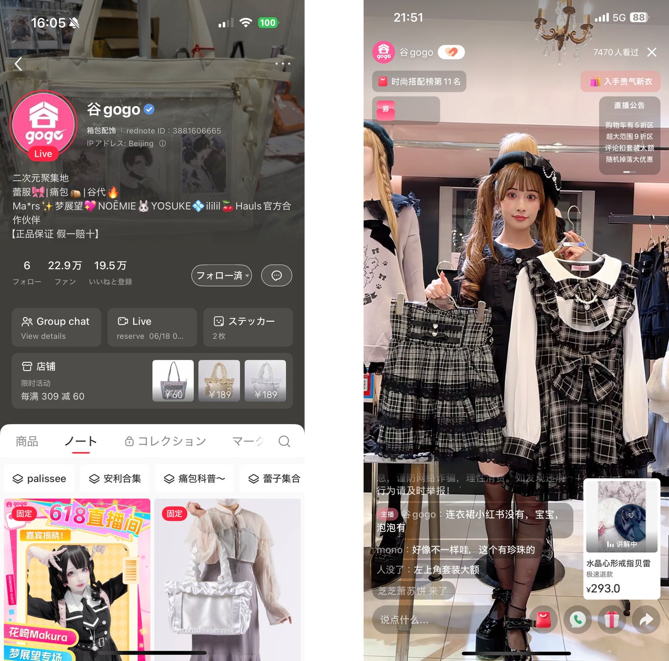 中国を代表するライフスタイル共有型SNSアプリの小紅書(Rednote)の二次元ファッション専門アカウント「谷gogo」は、ファロワーが22.7万人近くおり、投稿いいね数が19.5万を獲得しているアカウントです。